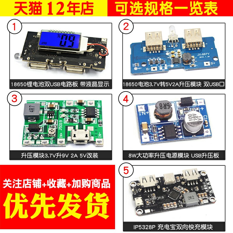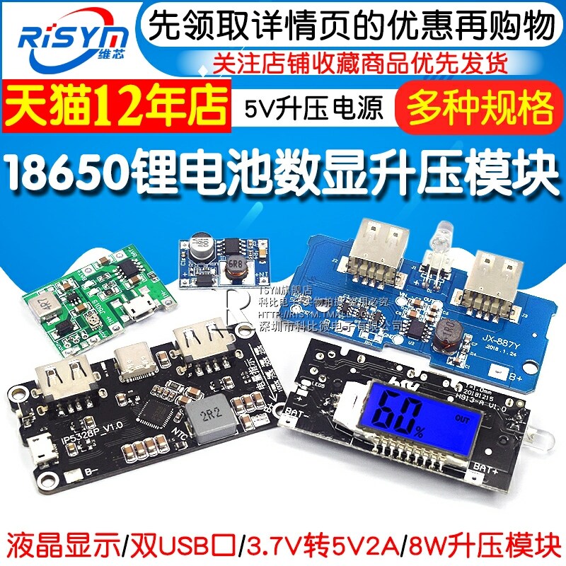 18650 lithium battery dual USB circuit board with liquid crystal display(1) 18650 battery 3 7V rotation 5V2A booster module Dual USB port(1) booster mode