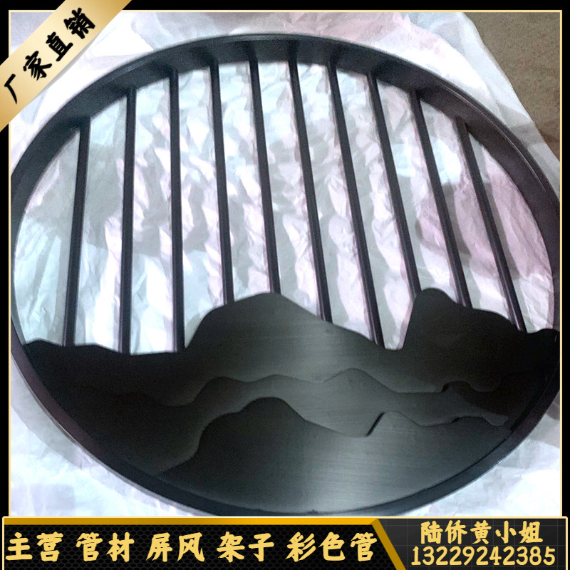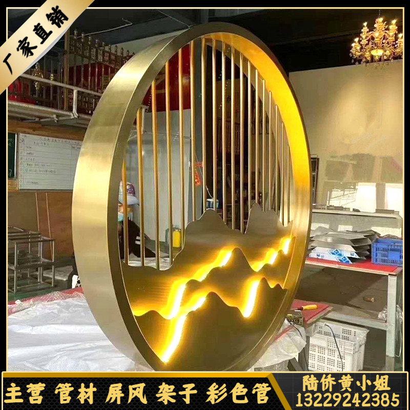 Customized stainless steel round fake mountain screen partition New Chinese drawing rose gold gold titanium gold gold decoration background wall