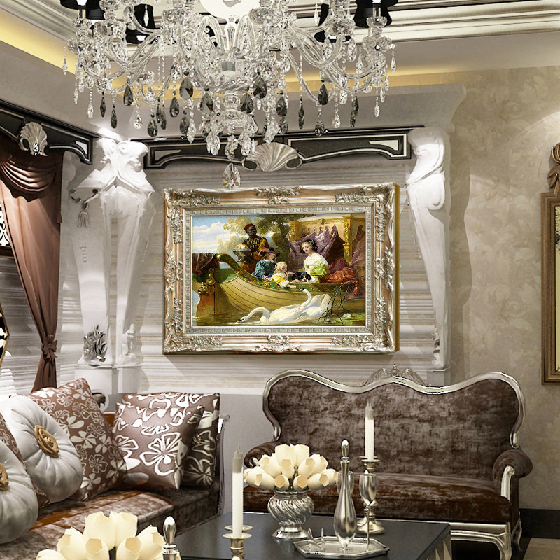 Living room sofa background wall mural atmospheric hanging painting animal swan bedroom decoration painting European character landscape oil painting