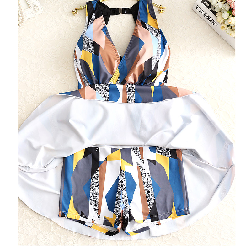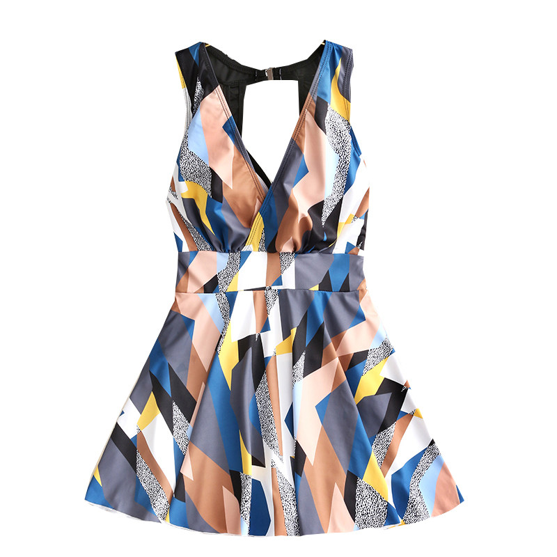 New swimsuit women's one-piece skirt belly cover thin sexy backless fat mm large size conservative Korean hot spring swimsuit