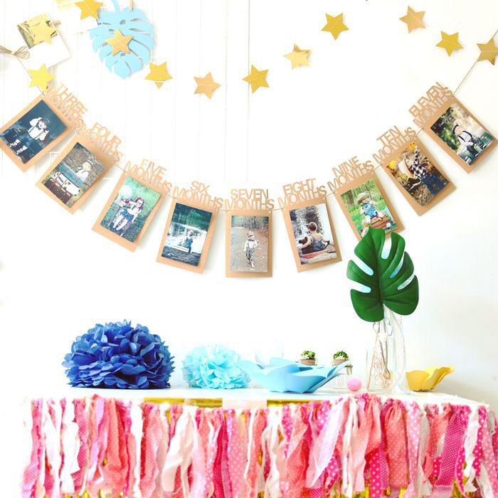 Baby Birthday Photo Frame Decoration Hemp Rope Hanging Birthday PARTY Placement Photo Wall Creative Home Decoration Items