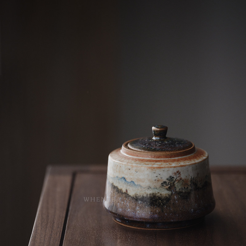 It is said that the Japanese Shino yaki pure hand-painted tea pot Jingdezhen city handmade ceramic fire cloud creative storage tea warehouse