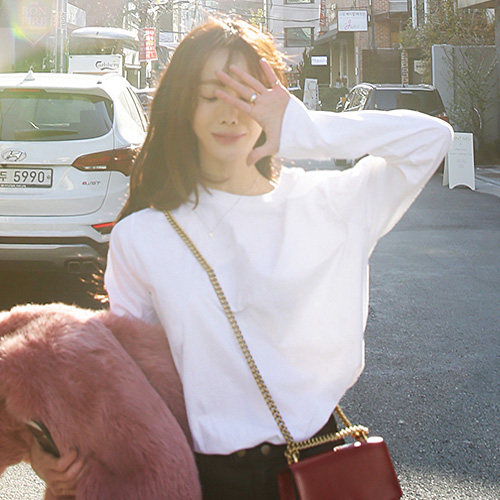 Spring and autumn white T-shirt woman sleeve loose T-shirt with a new round-neck cotton-hundred tops