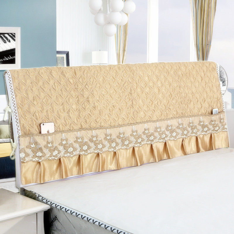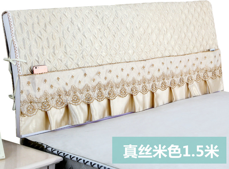 Bed head cover lace fabric autumn and winter warm 1 5m bed 1 8m bed dust cover solid wood soft bag protective cover