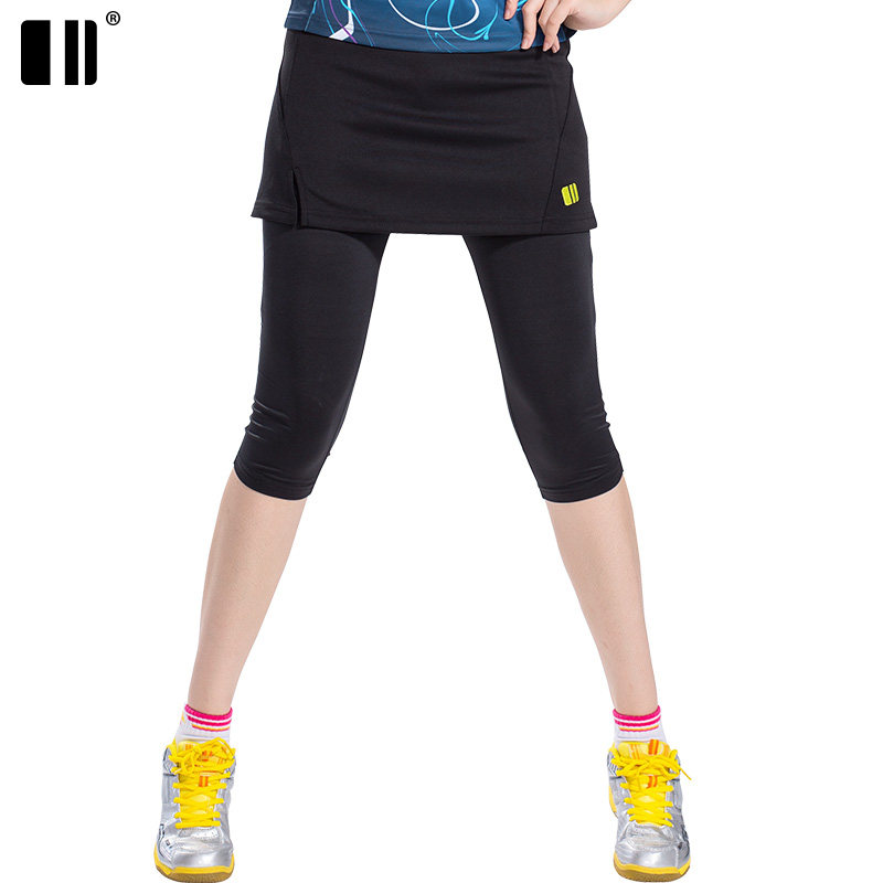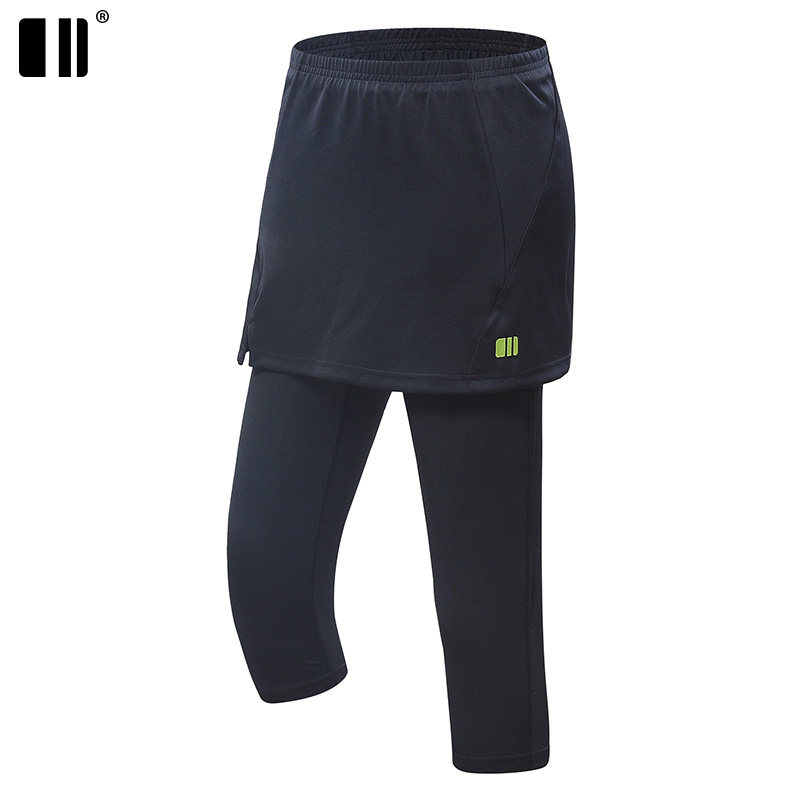 Spring and autumn new single and double running fitness women's fake two-piece sports quick-drying yoga seven-point culottes tennis culottes black