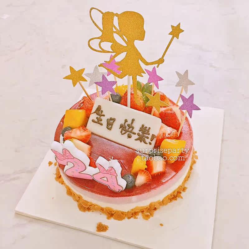 Brilliant series of little magic fairy shining little flower fairy card wings little girl magic wand birthday cake decoration