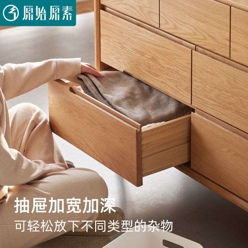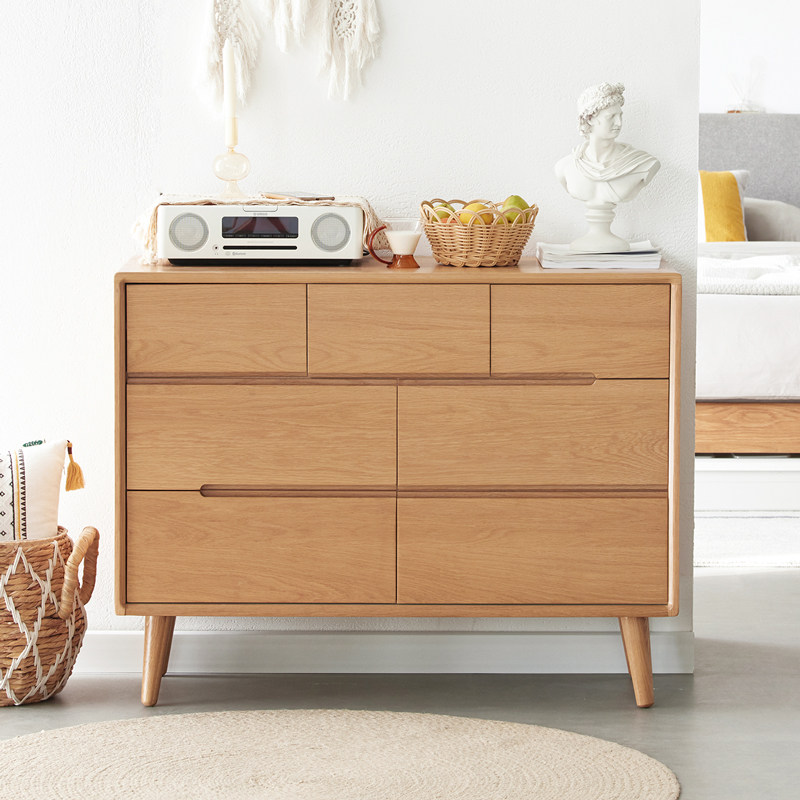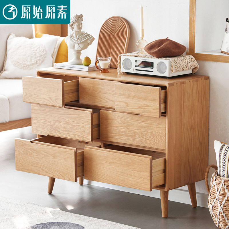Original Nordic environmental protection solid wood seven-drawer cabinet Modern oak log bedroom with drawer storage cabinet A1032