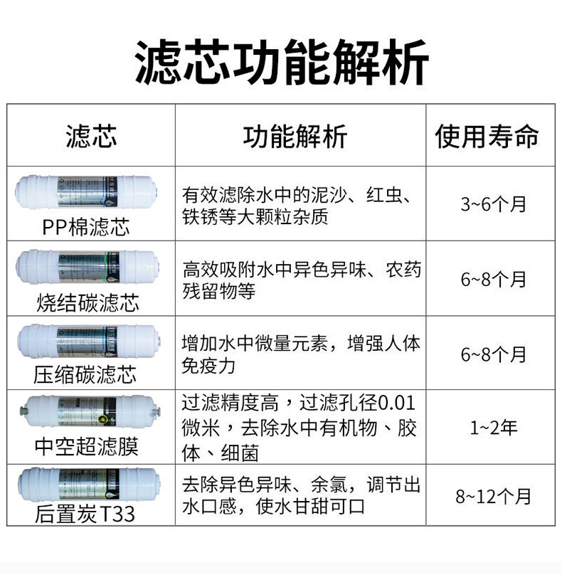 Korean-style pp cotton, Korean-style granular carbon, Korean-style compression, Korean-style ultrafiltration (with sewage), Korean-style ultrafiltration (without sewage), post-mineralization filter element, Korean-style small T33, Korean-style large T33 (two points), Korean-style 50G