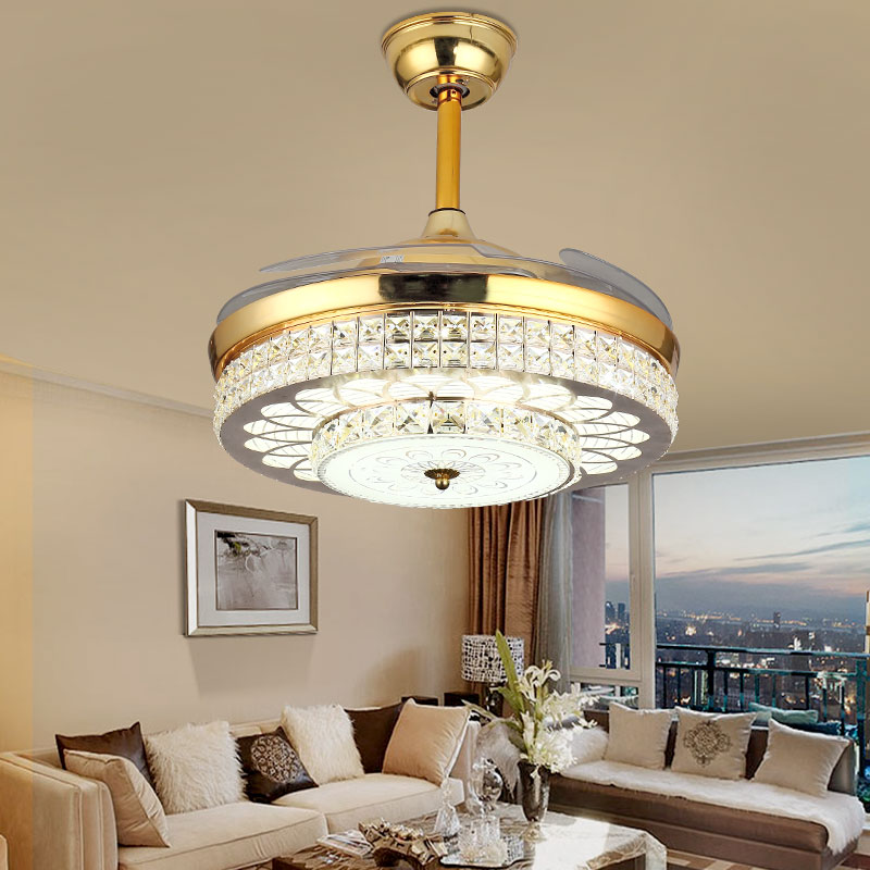 Factory wholesale new living room ceiling fan light led commercial bedroom dining room invisible ceiling fan light with light electric fan chandelier