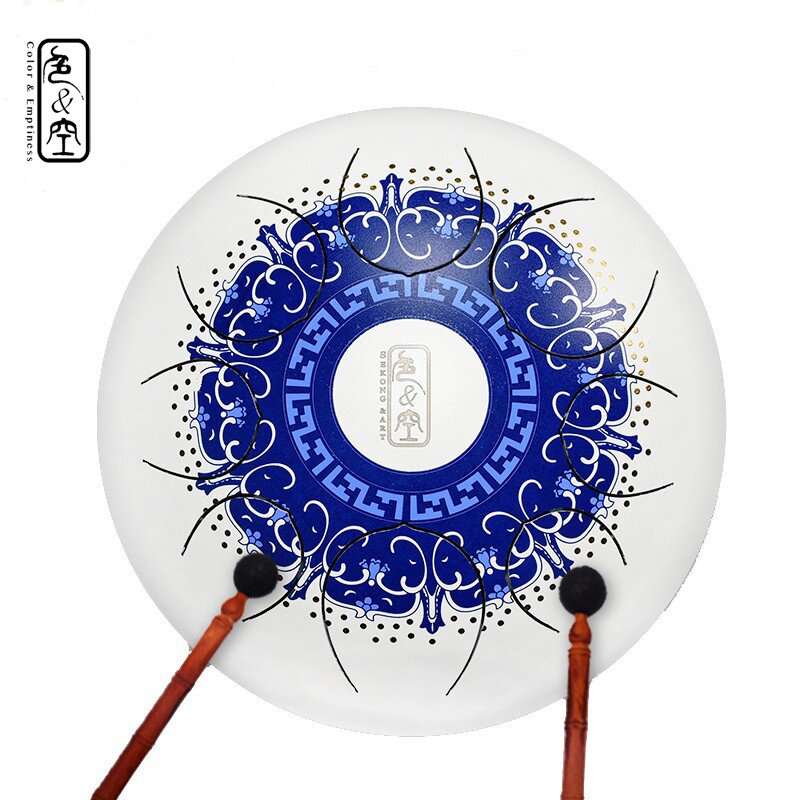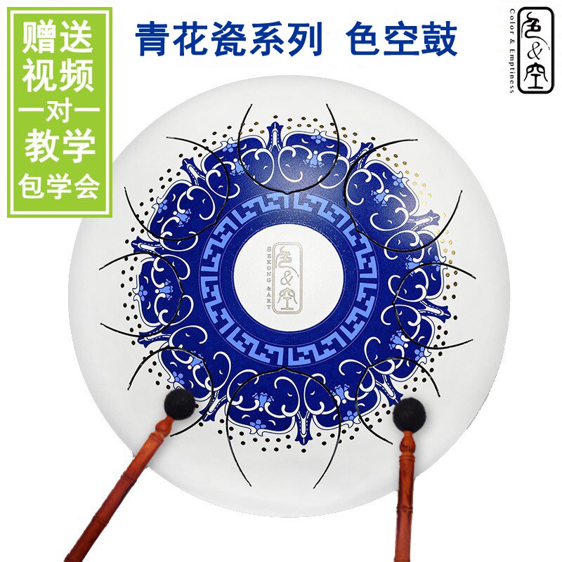 Yihai heart normal color empty art drum blue and white porcelain drum steel tongue drummer plate blue and white porcelain series professional color hollow drum