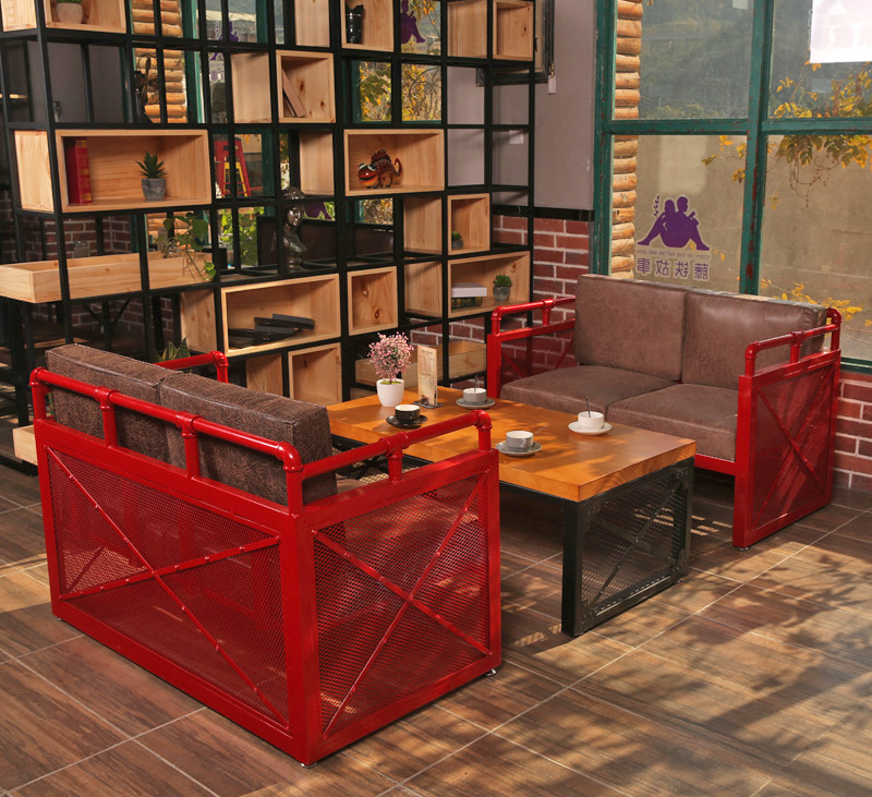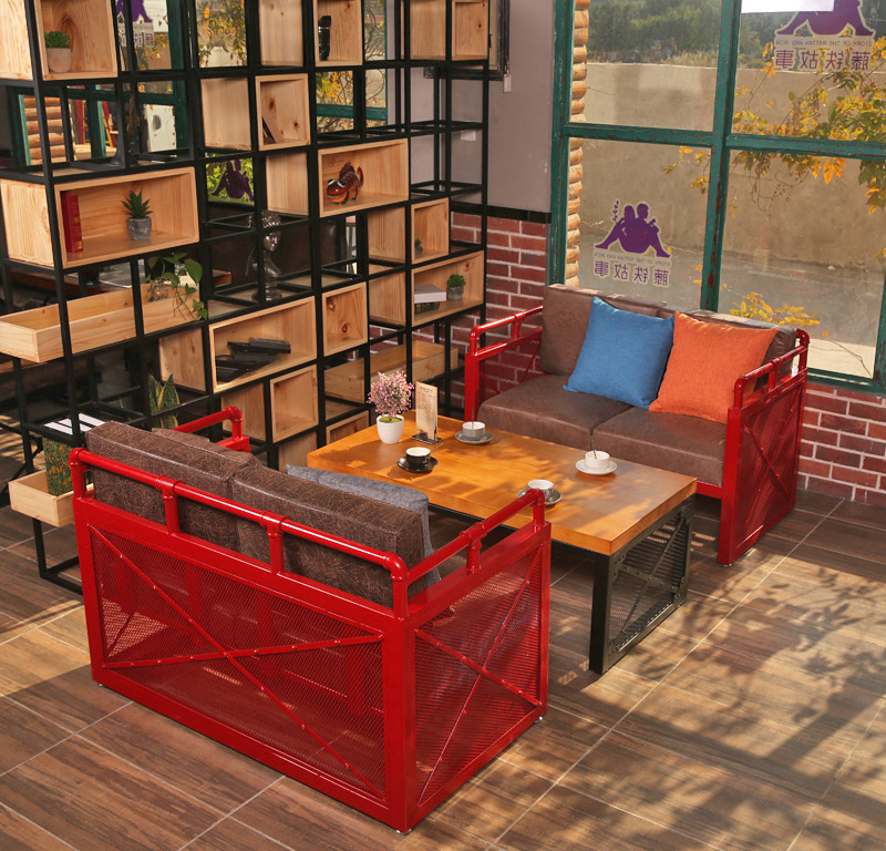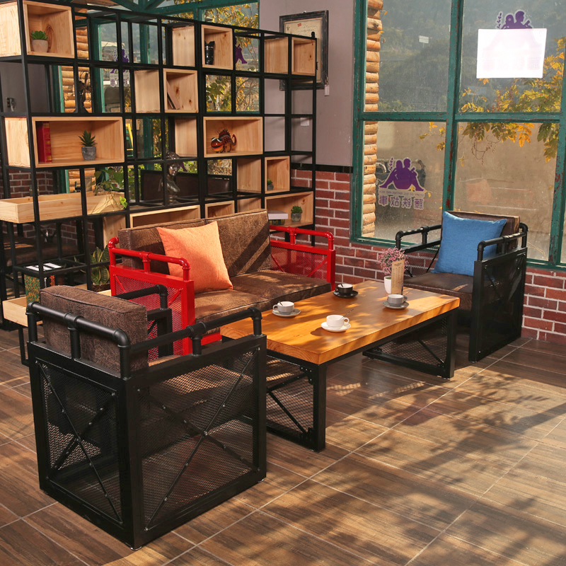 Industrial Wind Retro Antique Iron Art Sofa Tea Table Solid Wood Casual Bar Sweets Shop Café Sofa Table and chairs Composition
