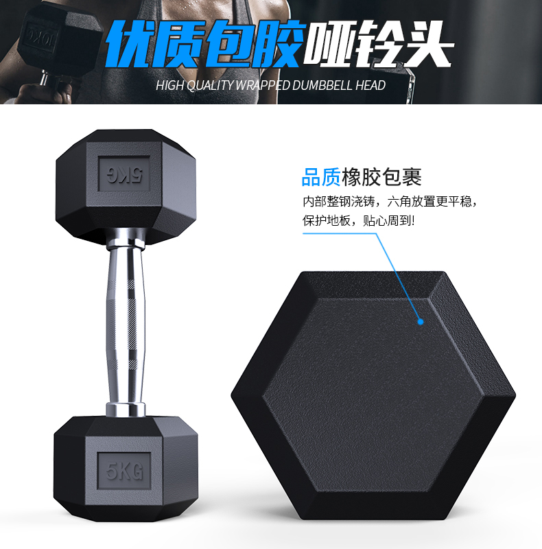 Chuangsiwei Professional fitness rubber fixed dumbbells Men's fitness Home fixed value Commercial private teaching hexagonal dumbbells