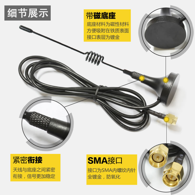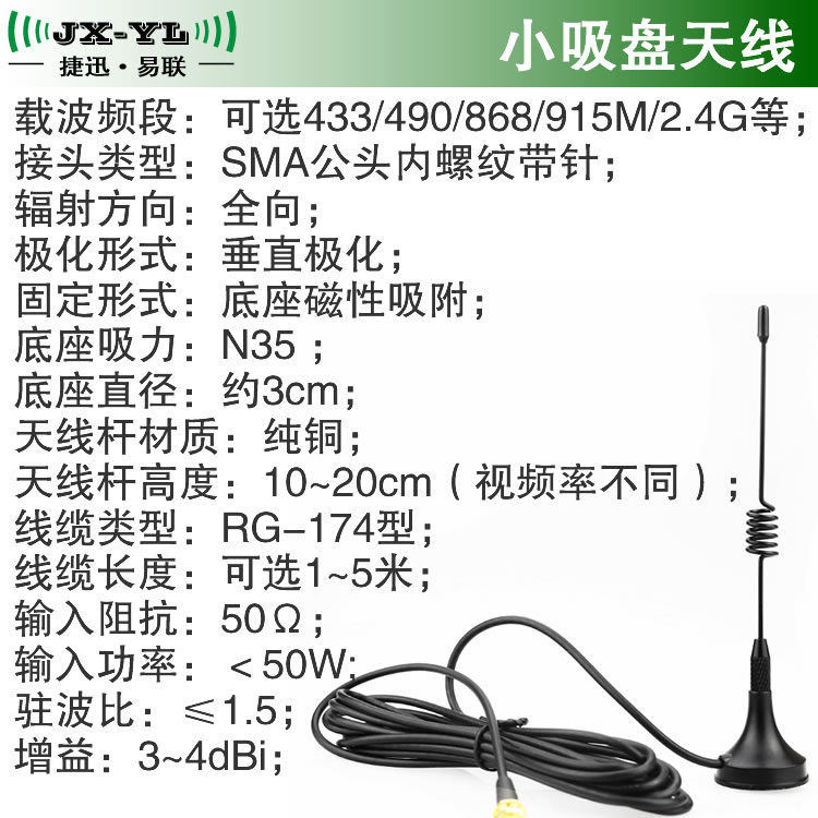 Wireless module 433490868915M Hz 2 4GHz omnidirectional high performance 2 m small suction cup antenna SMA