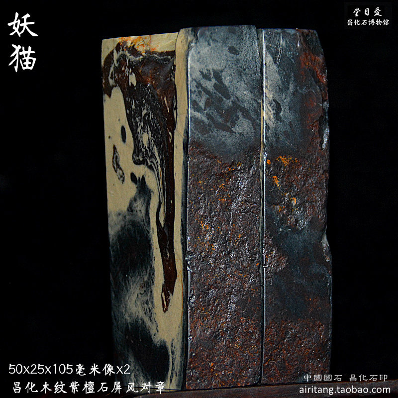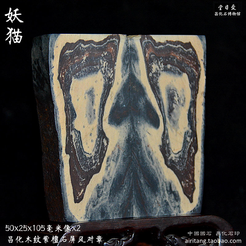 Changhua wood-grain red sandalwood stone clever stone screen pair Zhang Yaomao biography black skin monolith Airitang Chang Fossil Museum Collection