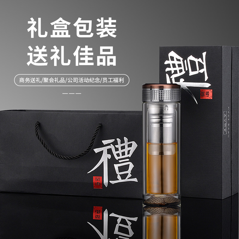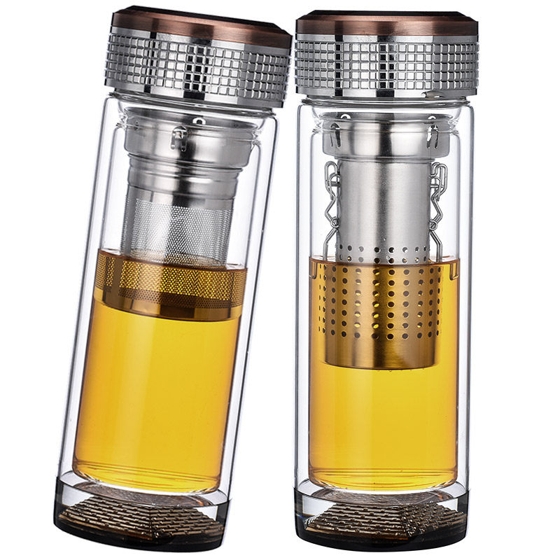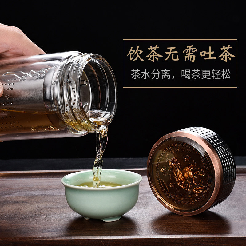 Horse to successful water glass glass cup double layer crystal heat resistant filter tea cup thickened poo transparent male and female tea water separation