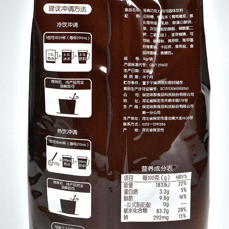 Taste Group Instant Original Taste Hot Chocolate Milk Powder Coco Cocoa Powder Rind drinks Milk Tea Shop Raw 1kg bagged