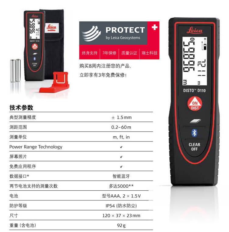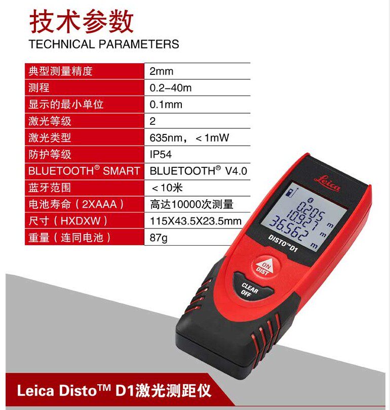 The new Leica Disto D2 D1 handheld laser rangefinder measures 100 meters of Bluetooth