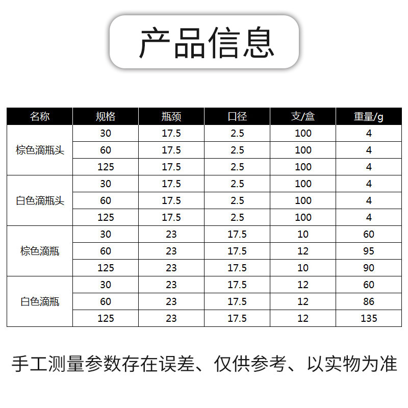 30ml (white drop bottle) 60ml 125ml (white drop bottle) 30ml (white drop bottle) 60ml (brown drop bottle) 125ml (brown drop bottle) 30ml (brown drop bottle) 30ml