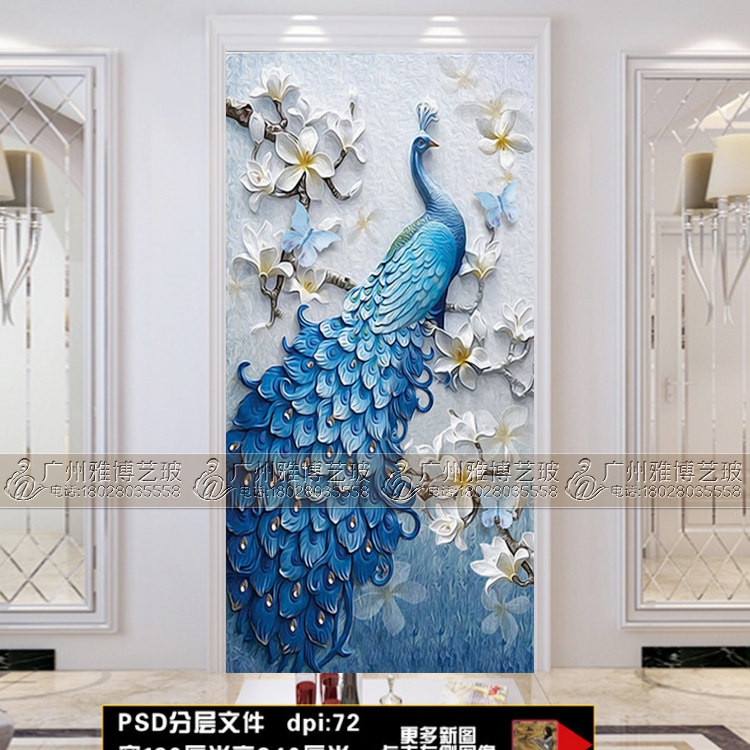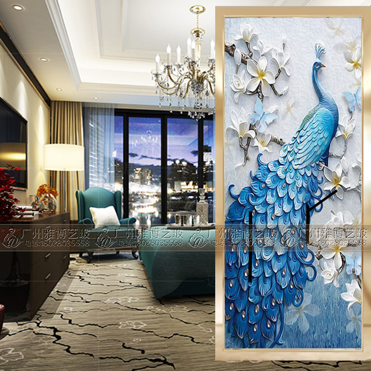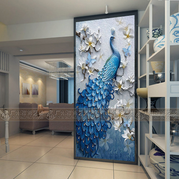 Art glass partition frosted carving carving craft European-style light-transmitting double-sided screen living room porch background wall
