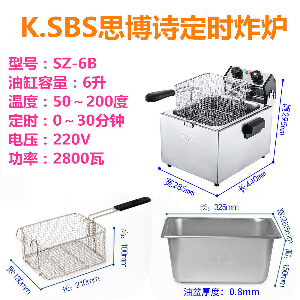Sibosi SZ-6B smoke-free timing electric fryer Commercial single-cylinder fryer fryer skewer chicken wings fries machine