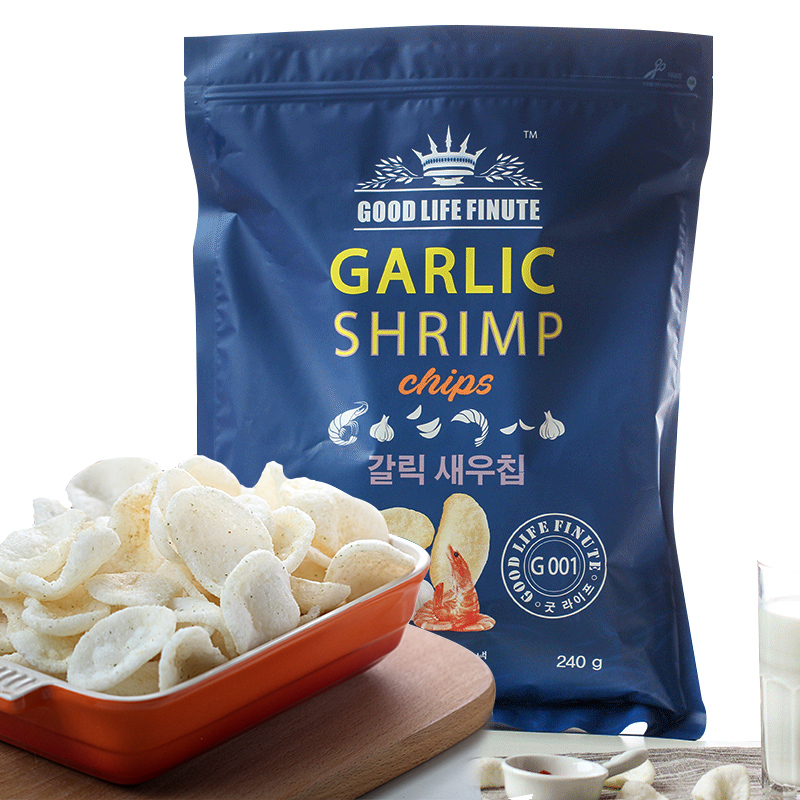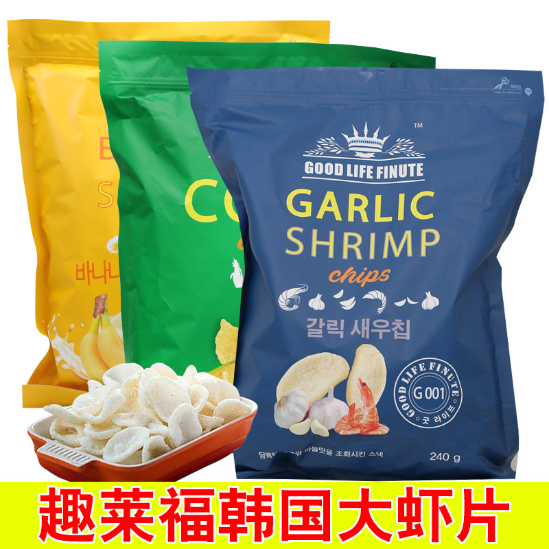 South Korea imported net red snack Qilaifu garlic fresh prawn slices 240g chips Huge puffed potato chips bagged