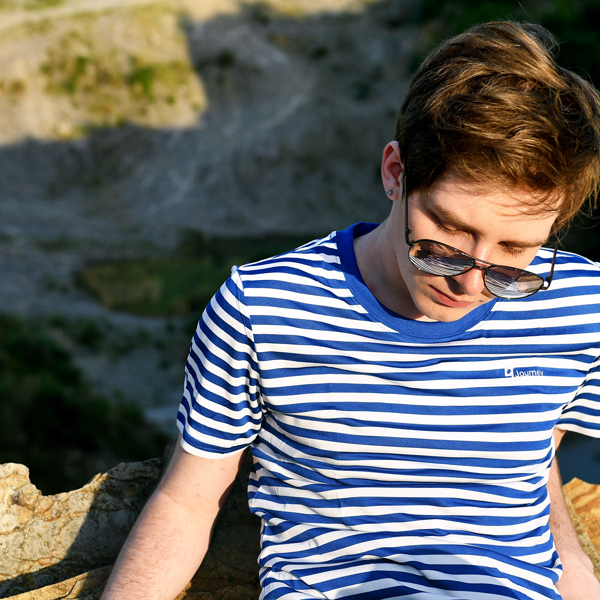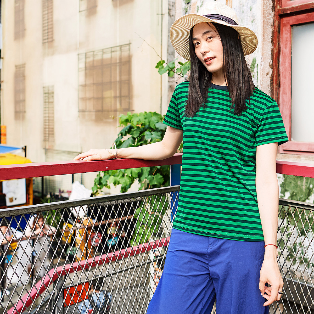 Beijing forest outdoor stretch slim quick drying jacket blue and white striped quick drying breathable sea soul shirt short sleeves men's and women's style