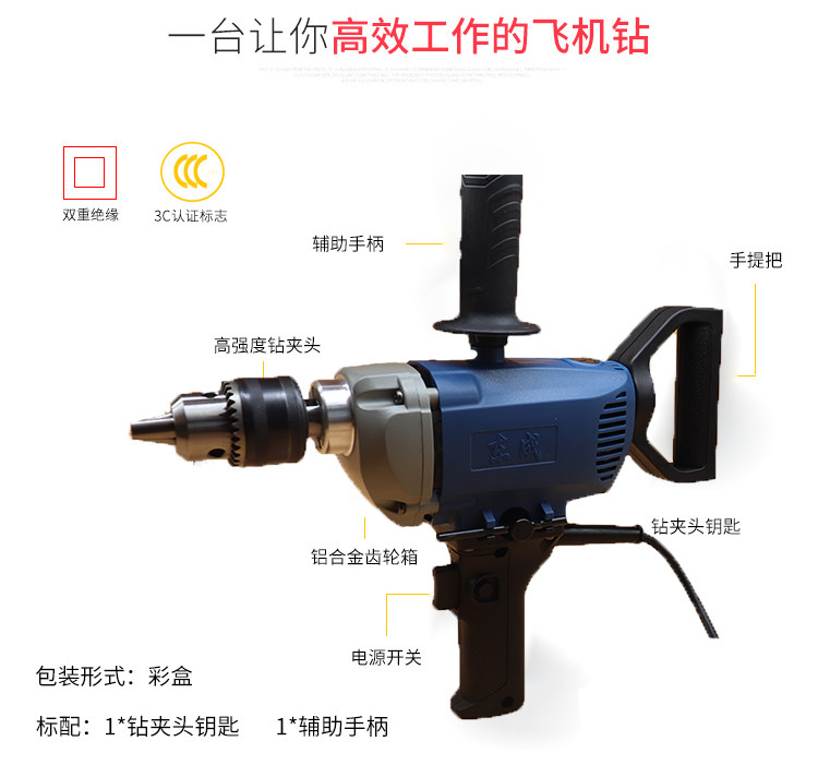 Dongcheng J1Z-FF03-16A aircraft drill pistol electric drill industrial grade high-power mixing drill putty graying machine
