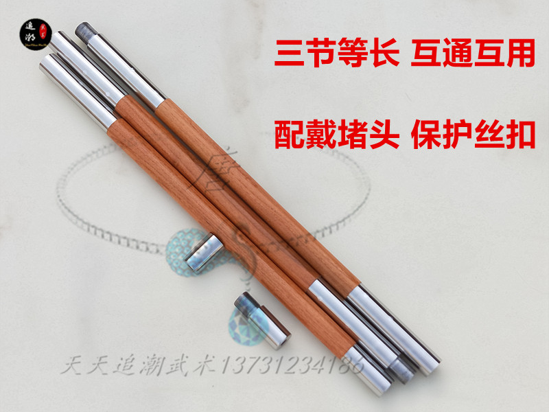 Solid wood martial art stick detachable white wax rod zibrow combined stick stainless steel splicing folding folding short stick long stick boutique