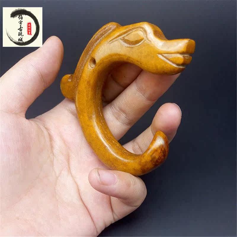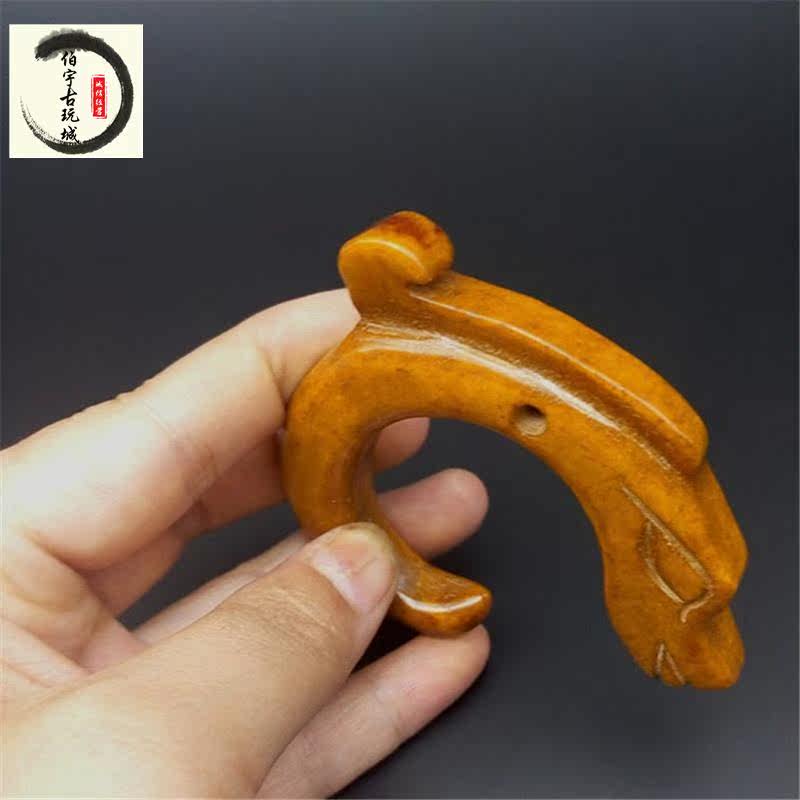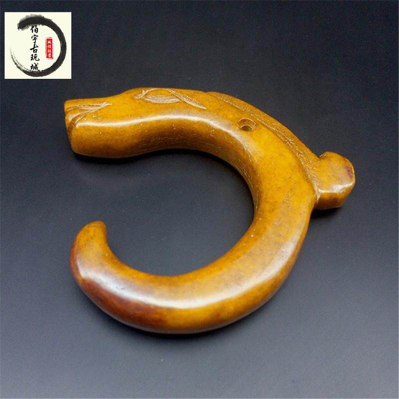 Antique miscellaneous antiques Ming and Qing antique jade Jade old Jade handlebar ornaments Gaogu jade pendant Dragon hook
