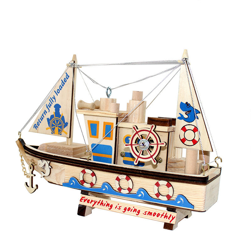 Creative rotating windmill Wooden sailing boat pen holder Music box Clockwork music box ornaments Men's and women's children's birthday gifts