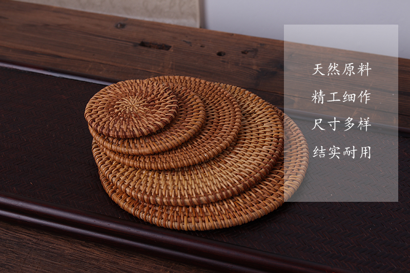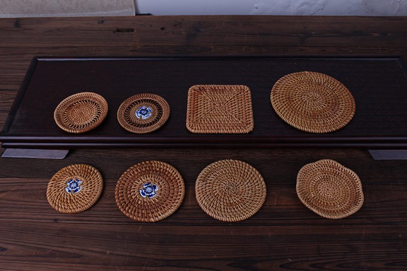 Vietnam old rattan coaster set tea pad tea set six gentleman wooden pot pad Kung Fu tea tea ceremony coaster