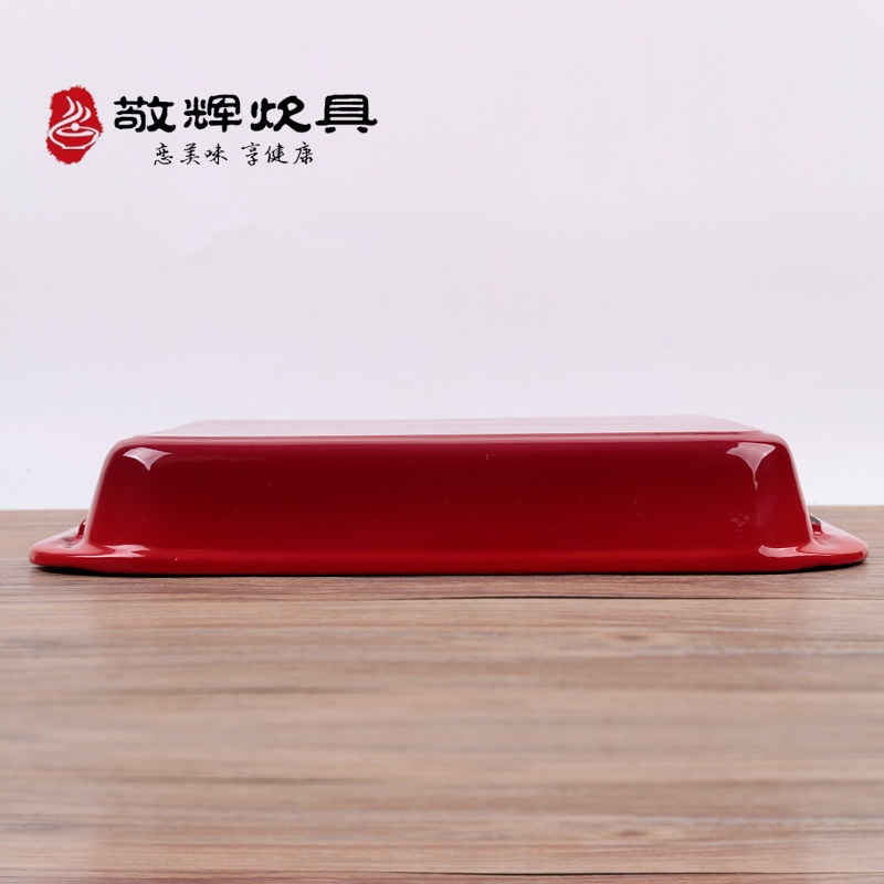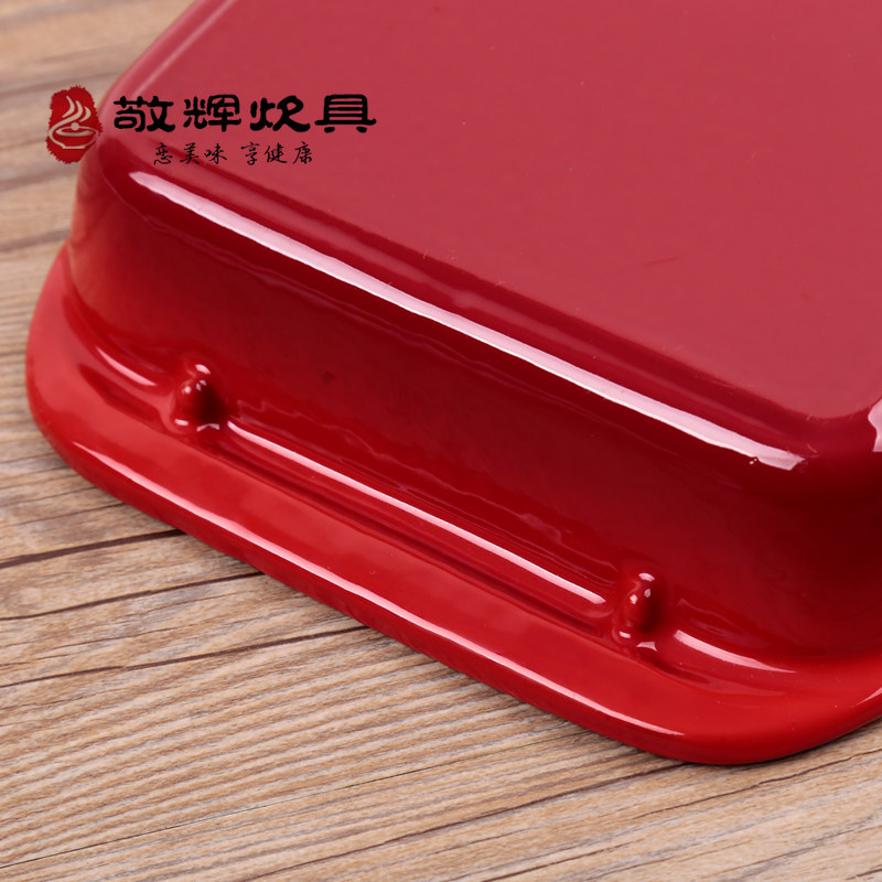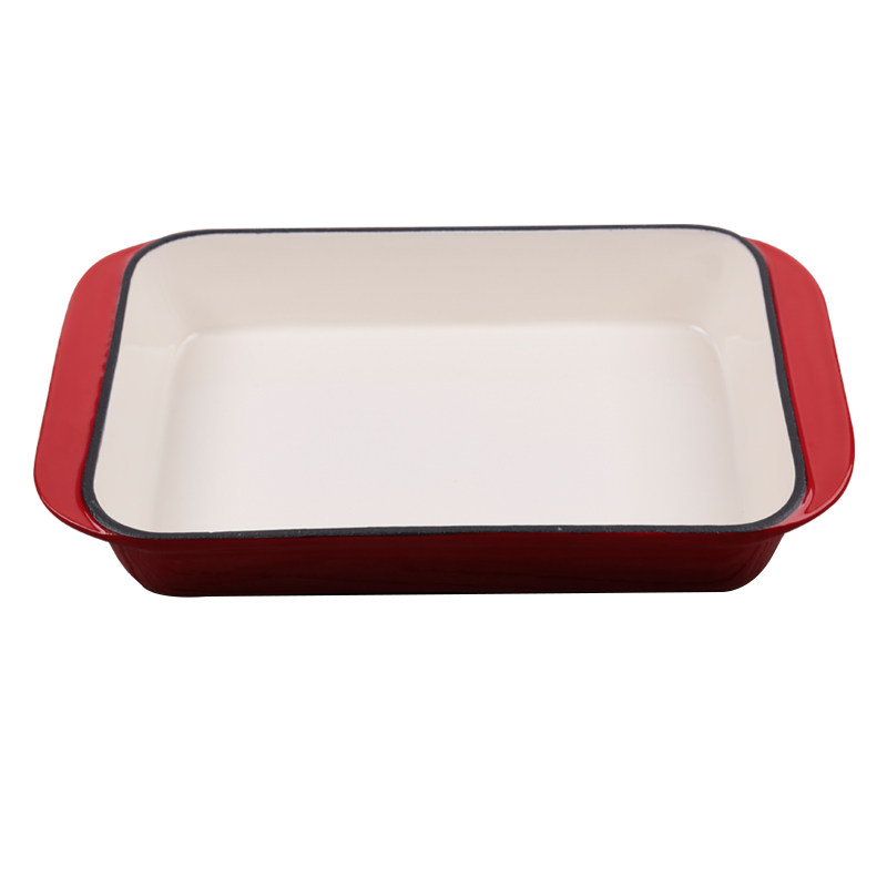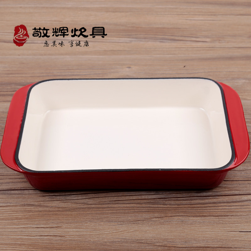Vegetable oil 30 * 21 cast iron baking tray with wood cover Outer red inner white 30 * 21 cast iron baking pan vegetable oil 30 * 21 cast iron baking tray Outer red inner white 30 * 21 cast iron baking tray with wood cover outside red inner white