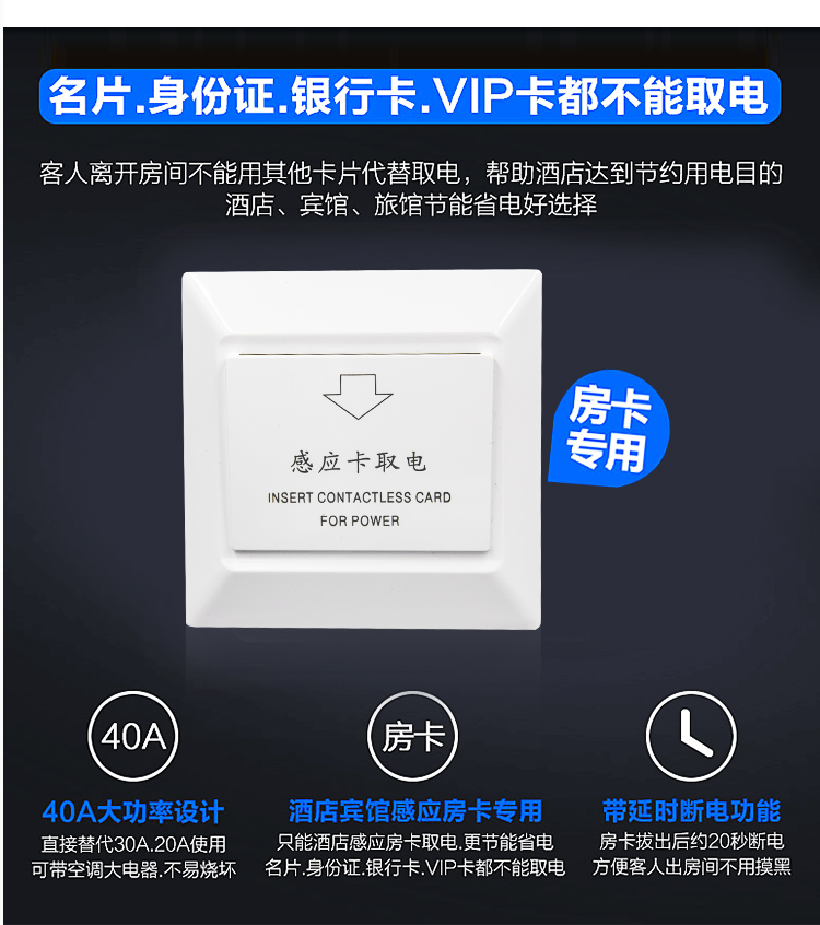 Hotel and guesthouse apartment plug-in card power switch low frequency induction card take-out electrical appliances Plug-in card power-out switch 40A delay