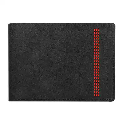 Men's leather wallet turned fur suede folded ultra-thin wallet leather short wallet personality tide alcantara
