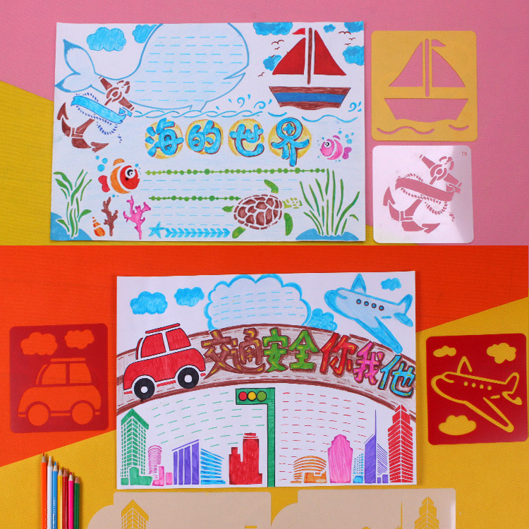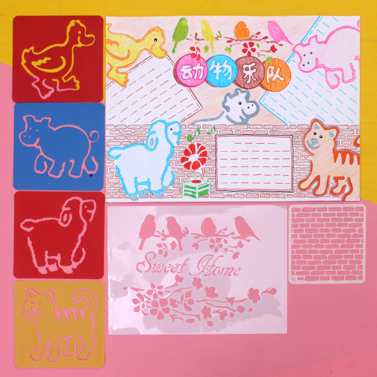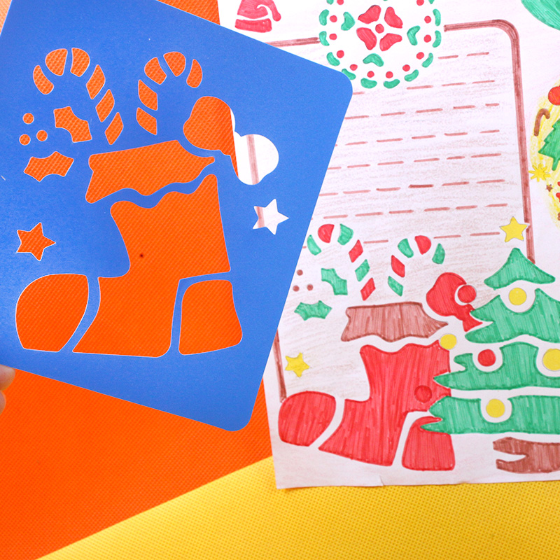 Christmas hand copy newspaper artifact template Hollow tool Primary school student Cartoon painting Drawing tool set Lace ruler