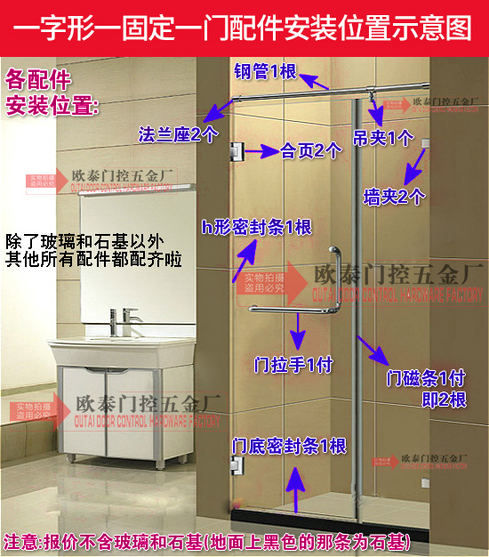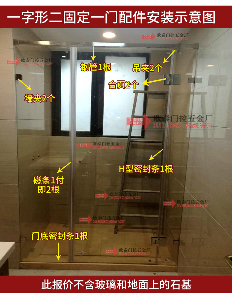One-type shower room accessories Hardware complete flat open push-pull fixer glass partition 304 stainless steel accessories