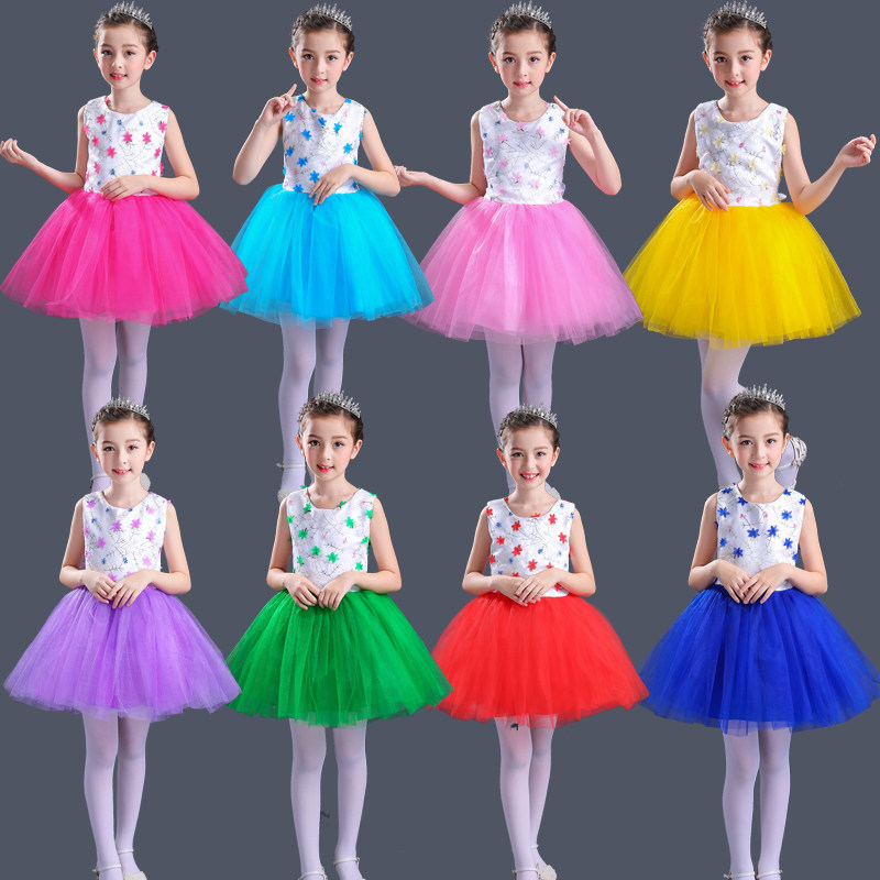 Children's acting out of the girl's princess dress choral suit for primary and middle school students to perform flowers embroidered fluffy dance dress