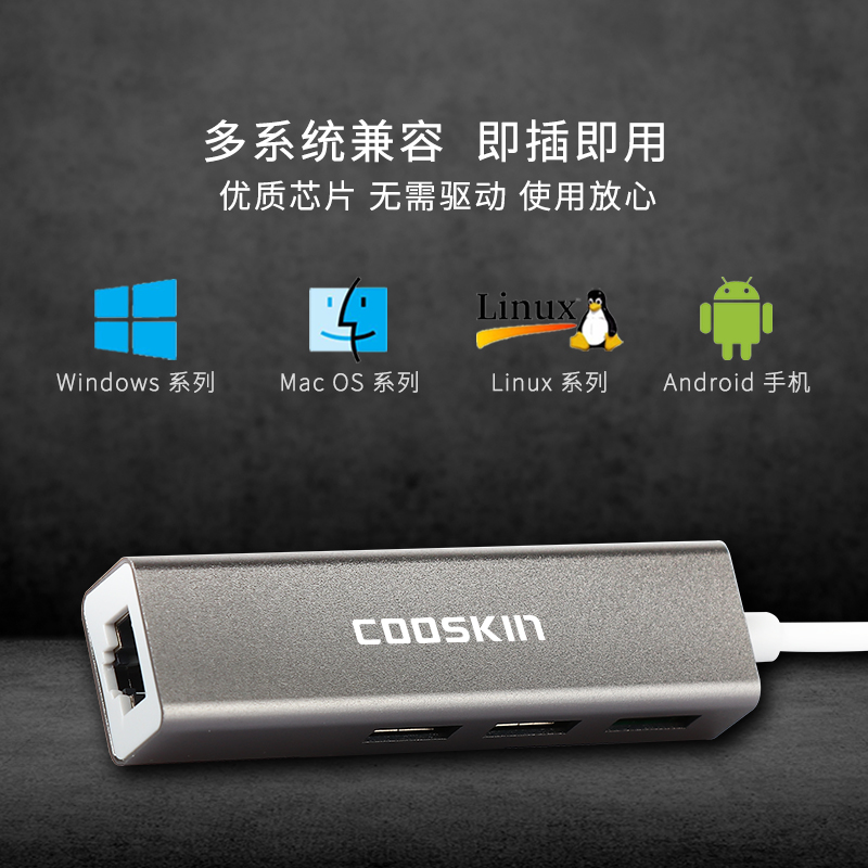 One Drag Triple USB Splitter Laptop Netcard Transnetwork Route Multi-Interface Adapter Type-C Expands Hub Internet Converter Hub Apple Computer Accessories Porous external charging