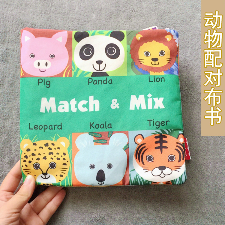 Export single animal face matching baby sound paper cloth book peek-a-boo baby cognitive puzzle rattle BB toy