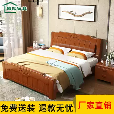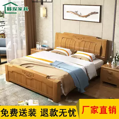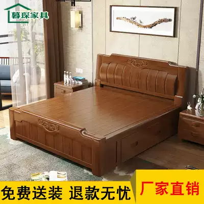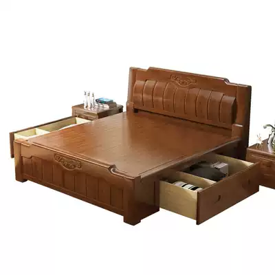 Modern Chinese full solid wood bed White 1 8m storage high box bed 1 5M modern simple oak double wedding bed