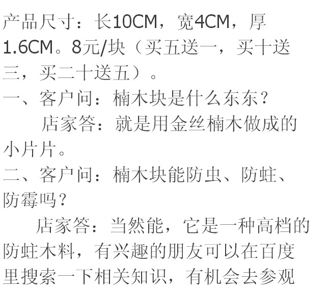 Buy five get one free golden silk nan wood block instead of camphor wood block white sweater fur anti-moth and insect prevention special