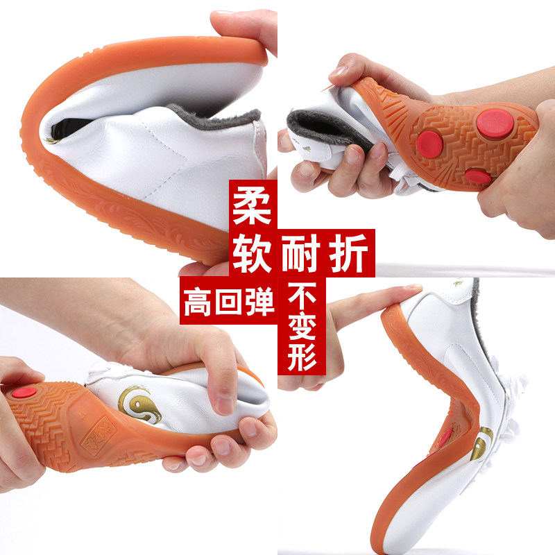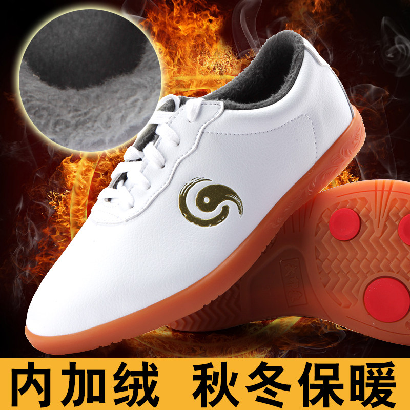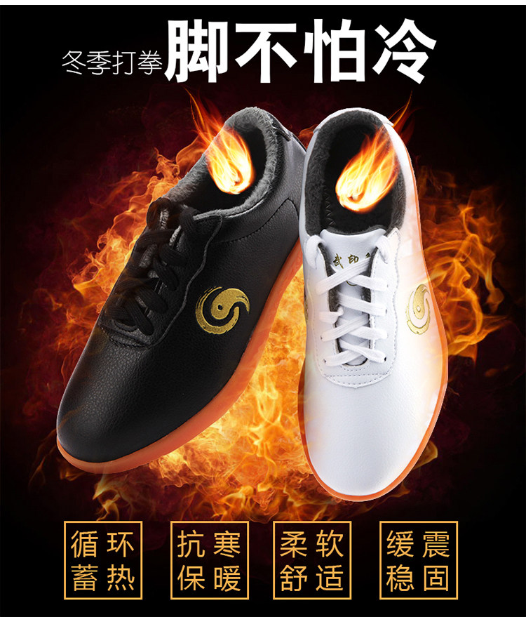 Autumn and winter tai chi shoes men's plus velvet warm martial arts toe layer soft leather performance shoes women's tendon bottom practice shoes boxing shoes
