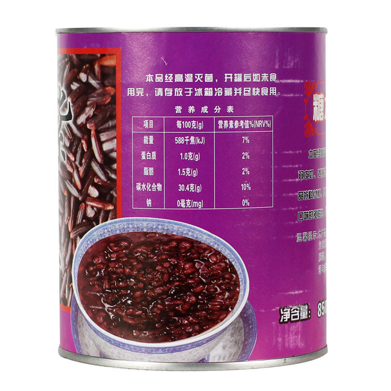 Famous Faithful Purple Rice Canned 850g Black Rice Blood Sticky Rice Purple Glutinous Rice Canned Sweet raw material