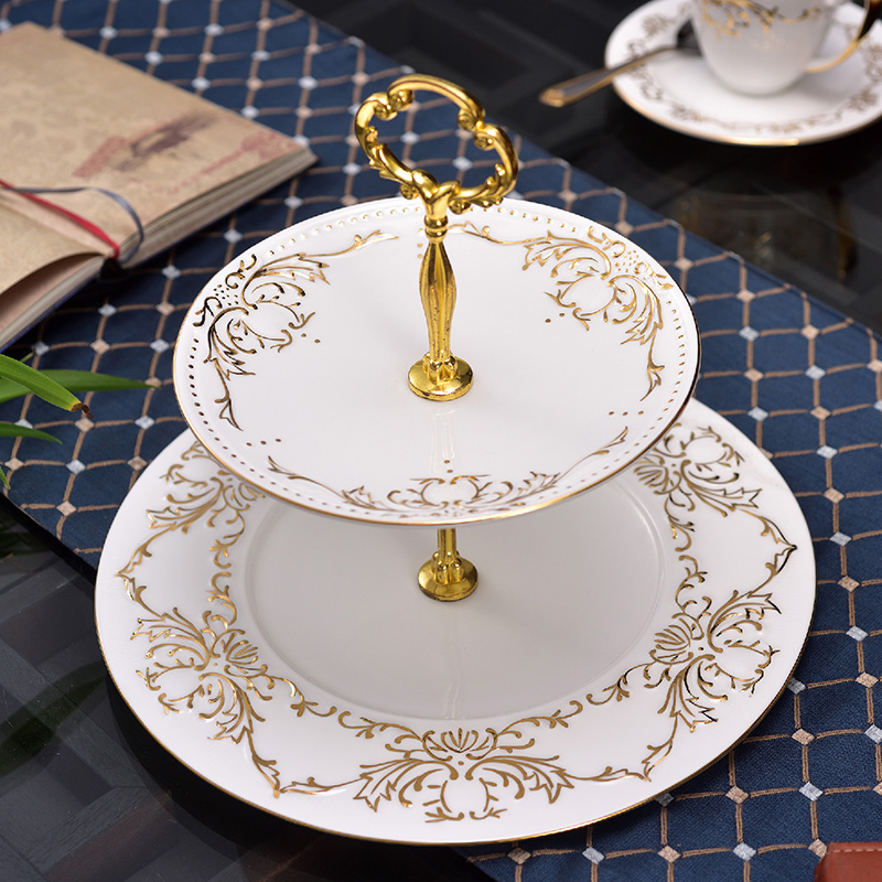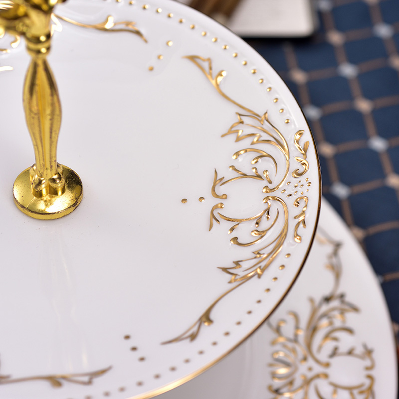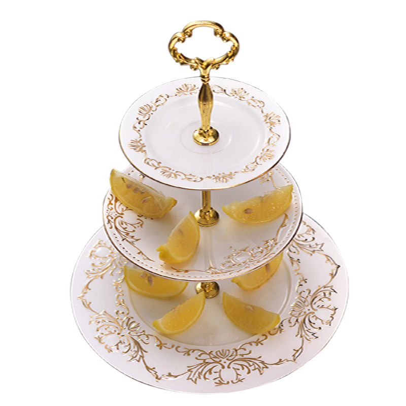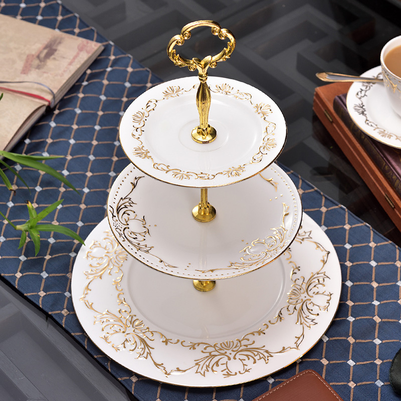 English Style Luxury bone porcelain European style Lower afternoon tea refreshment rack Living room Home Fruit tray Triple Fruit Tray Cake Rack Pastry