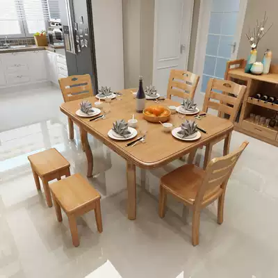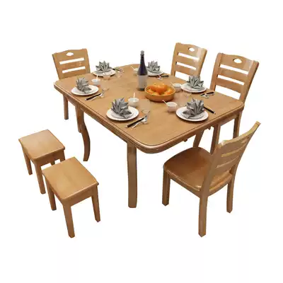 Small apartment full solid wood dining table and chair 4 6 people combination folding square household dining table telescopic square table eating table
