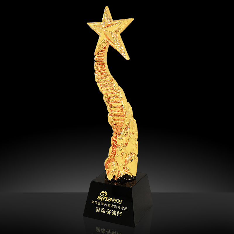 Gold-plated trophy pentagram custom metal creative crystal medal making competition commemorative award free lettering