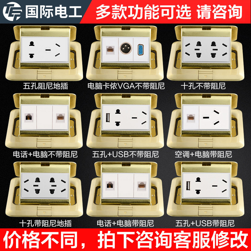 International Electrotechnical All - copper floor waterproof switch hidden damping 16A five - hole power socket