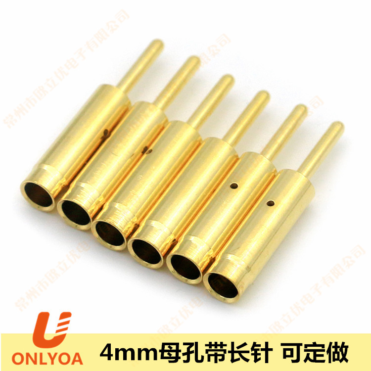 Ouliyou 4mm banana socket female hole one-piece copper gold plated with long pin connector connector terminal can be customized