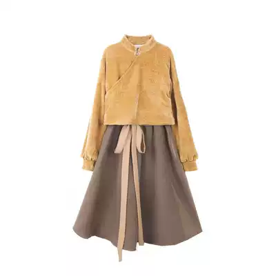 Chuan Dai: Jinling College Yellow Brown Original Design Republic of China College Collar Top Nest Dress Two-piece Set
