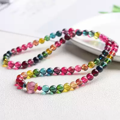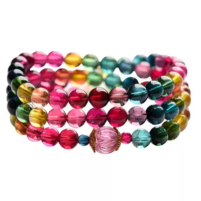 Photinia bamboo live special shot Super-linked natural tourmaline hand Candy Rainbow tourmaline hand multi-circle tourmaline hand